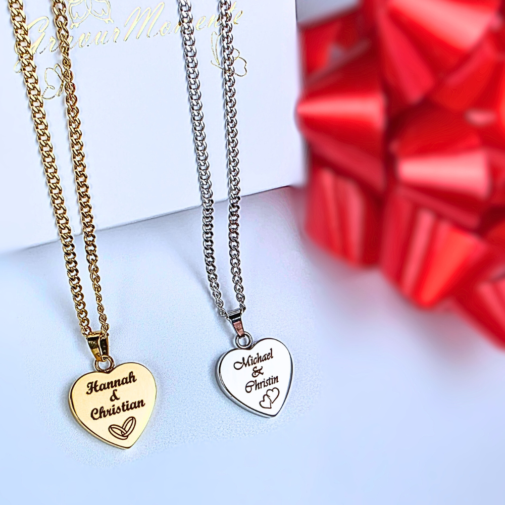 Tragt eure Liebe stets bei euch – mit einem Anhänger, der zwei Namen und ein Symbol eurer Wahl verewigt. Ein perfektes Zeichen der Verbundenheit.
