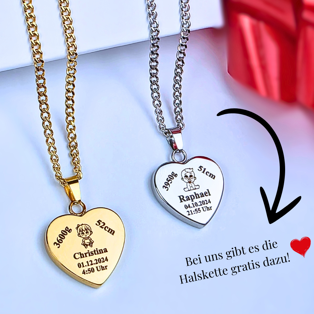 Trage die Geburtsdaten deines Kindes immer bei dir – mit einem liebevoll gravierten Anhänger.