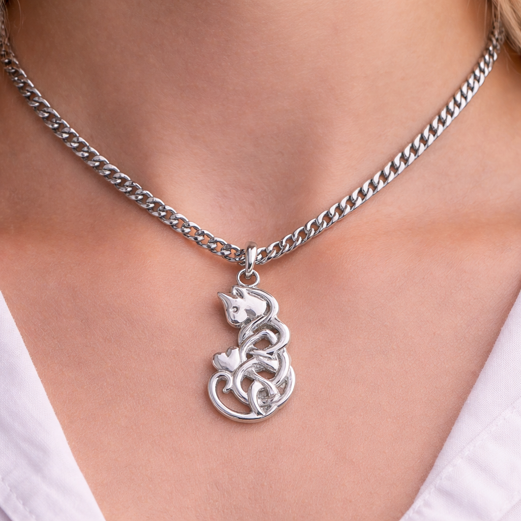 Das verspielte Katzendesign trifft auf ein zart integriertes Herz und macht diesen Anhänger zu einem echten Herzensstück – dezent, modern und voller Charme. Ob als täglicher Begleiter oder als Geschenk für echte Katzenliebhaber:innen: Dieser Anhänger sagt leise, aber ehrlich „Du gehörst zu meinem Herzen.“